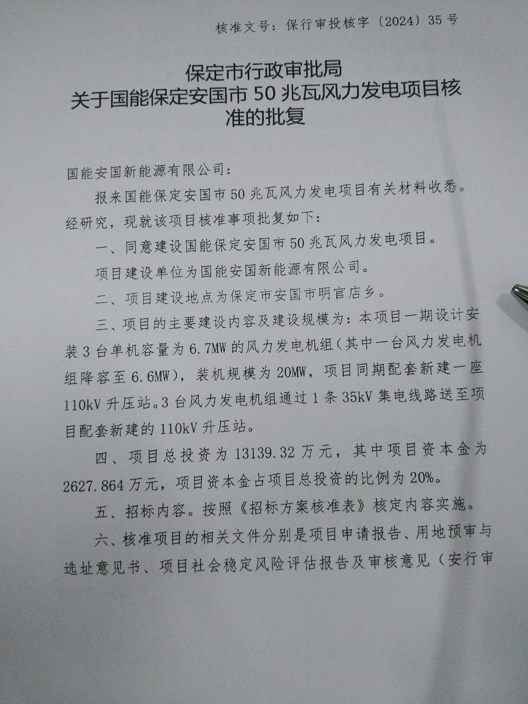 项目名称 | 国能安国新能源有限公司国能保定安国市50兆瓦风力发电项目 | ||||